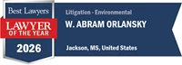 Abram Orlansky was admitted to the Mississippi Bar in 2012. Prior to joining the firm, he served as law clerk to The Honorable Rhesa H. Barksdale, United States Court of Appeals for the Fifth Circuit. His practice focuses primarily on environmental law, wherein he represents clients before the Mississippi Department of Environmental Quality, the Environmental Protection Agency, and the United States Corps of Engineers, along with state and federal courts. Abram has assisted clients with issues including a major site contamination resulting from a train derailment, shepherding major projects through the Corps of Engineers permitting process, subsurface investigations and regulatory processes at contaminated properties, litigation arising from the discharge of pollutants, permitting issues, site closures, and other environmental projects. Abram also practices in the area of cybersecurity, and has assisted clients in responding to large-scale cyberattacks in a variety of industries, with a focus on healthcare-related breaches. Abram has held leadership and committee positions with Jackson Young Lawyers, the Mississippi Bar Young Lawyers Division, and the American Bar Association’s Section on Environment, Energy, and Resources.
